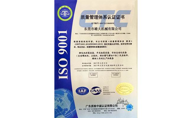 由廣東質(zhì)檢中誠認(rèn)證有限公司派出的審核小組,于2017年12月15日至2017年12月16日對我司進(jìn)行了質(zhì)量管理體系現(xiàn)場審核。經(jīng)質(zhì)檢中誠認(rèn)證有限公司技術(shù)委員會對審核小組提交的審核報告的審定,批準(zhǔn)審核小組現(xiàn)場審核結(jié)論,我司符合GB/T19001-2016ISO9001:2015的要求,同意發(fā)給質(zhì)量管理體系認(rèn)證證書并予以注冊:證書編號04917Q12486ROM